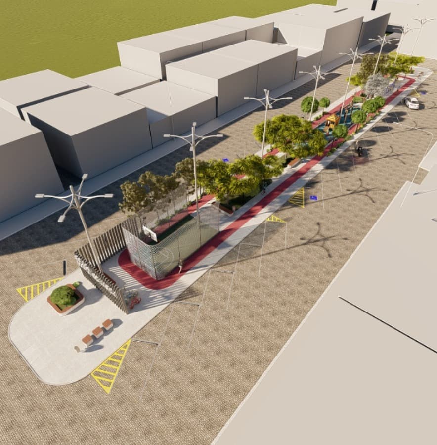 A praça contará com uma quadra de X1 de basquete, brinquedos para as crianças, pista de cooper e arborização. O novo espaço contribuirá com a promoção da saúde, do esporte e do lazer, atendendo pessoas de todas as idades.